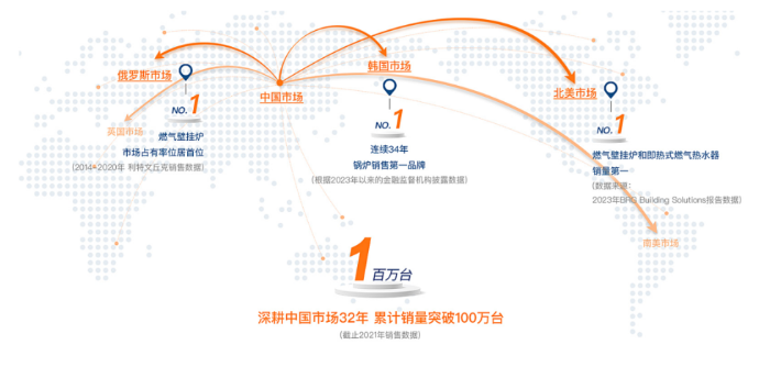 自成立以来,庆东纳碧安及其子公司始终致力于提供有效利用能源和环境保护的解决方案。凭借卓越的产品质量和技术创新,公司已在全球市场上崭露头角,特别是在北美锅炉和即热式燃气米兰网页版市场取得第一名的地位,并将其产品出口到全球近50个国家,已成长为一家“全球化企业”。