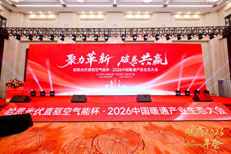 1月10日,由暖商传媒主办的“哈思光伏直驱空气能杯”2026中国暖通产业生态大会在河北石家庄翠屏山迎宾馆举行。大会以“聚力革新、破卷共赢”为主题,汇聚行业研究机构代表、品牌企业、渠道商及工程商代表,议程围绕政策研判、技术应用、渠道增长与工程落地等板块展开,为行业提供了一次高密度的观点与方法对齐。